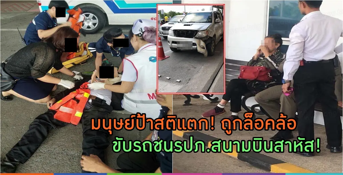 มนุษย์ป้าสติแตกถูก “ล็อคล้อ” ขับกระบะพุ่งชนรปภ.สาหัส รถพังยับ 5 คันรวด