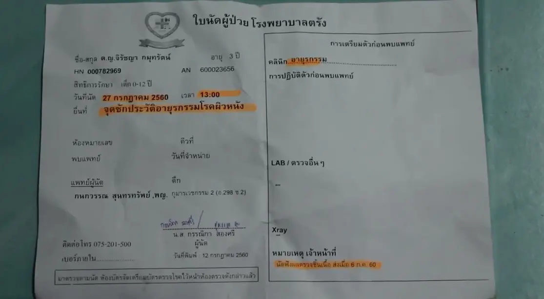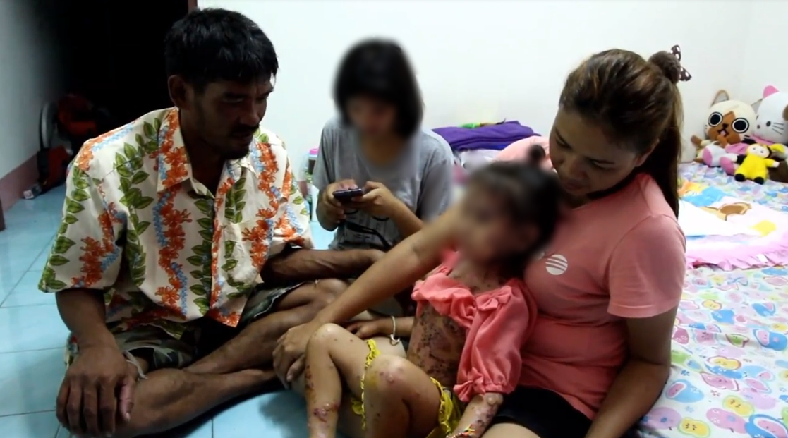 มีผู้ใช้เฟสบุ๊กชื่อว่า Panuwat Ruktubtiang ได้โพสต์ภาพเด็กหญิงวัย 3 ขวบป่วยเป็นโรคประหลาด มีตุ่มน้ำพุพองผุดขึ้นเต็มตัว โดยระบุว่า พี่สาวของเด็กหญิงคนนี้ได้มาหาเพื่อขอให้ช่วยเหลือน้องสาว ในขณะที่ผู้สื่อข่าวลงพื้นที่ พบว่าเด็กน้อยป่วยจริง ผู้เป็นแม่ต้องหยุดงานมาดูแล ทำให้ขาดรายได้ พร้อมเผย ใจจะขาดทุกครั้งที่เห็นลูกร้องโอดโอย ขณะที่แพทย์ยังไม่ทราบสาเหตุ