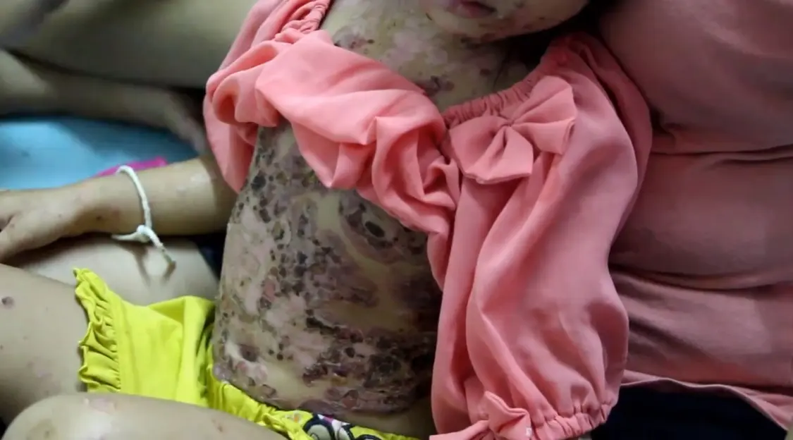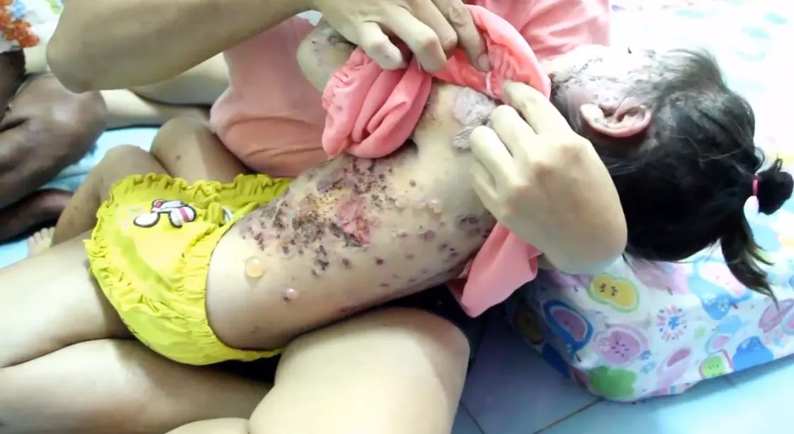เด็กหญิงวัย 3 ขวบป่วยประหลาด ตุ่มน้ำพุงพองผุดขึ้นเต็มตัว แม่เผยใจจะขาดเห็นลูกร้องโอดโอย แพทย์ยังไม่ทราบสาเหตุ