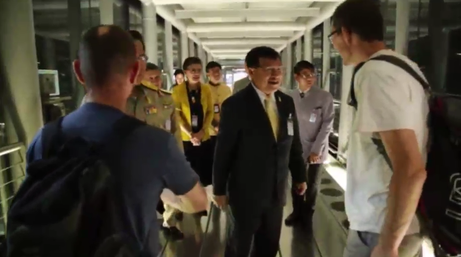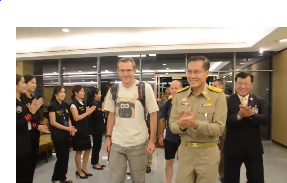 โดยนายโวแลนเทน และ นายมอลลินสัน เดินทางจาก จังหวัดเชียงราย เมื่อคืน (11 ก.ค.) มาลงที่ ท่าอากาศยานสุวรรณภูมิ เพื่อต่อเครื่องบินเดินทางไปยัง กรุงลอนดอน ประเทศอังกฤษ ด้วย สายการบินของการบินไทย
