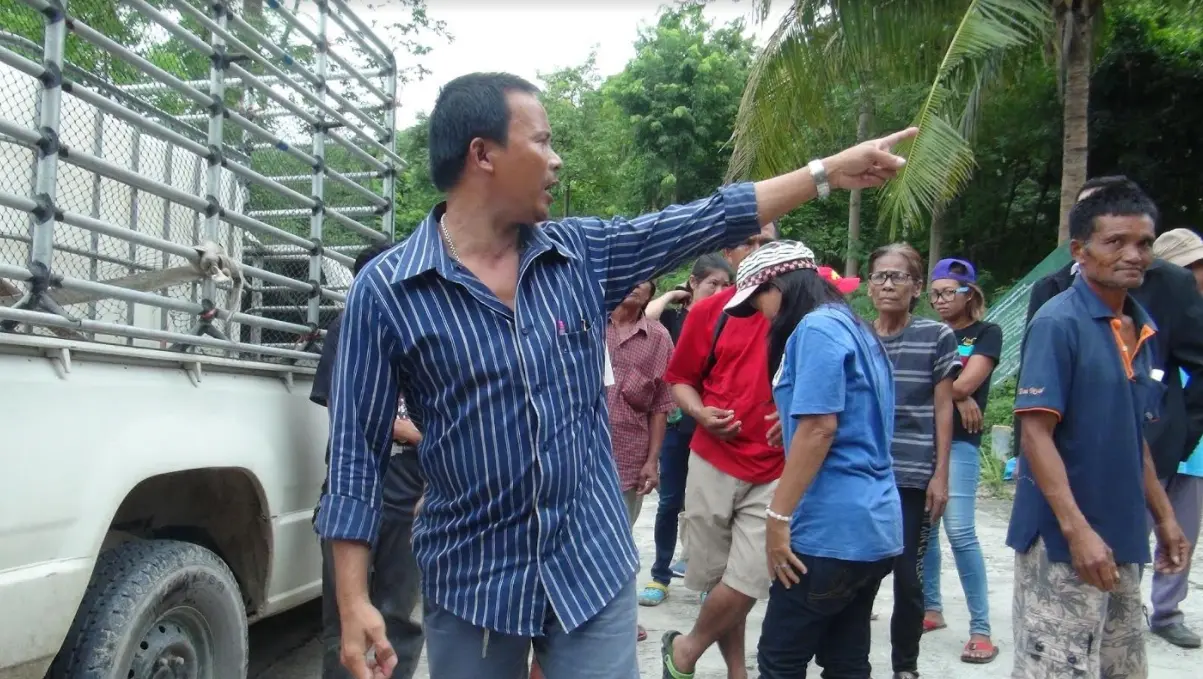 เมื่อไปถึงพบชาวบ้าน หญิง ชาย รวมกว่า 30 คน พร้อมรถแห่ป้าย 1 คัน กำลังรวมตัวกัน โดยมีเจ้าหน้าที่ เทศบาลตำบลมะขามคู่ เข้าเจรจา ขอให้ทุกคนอยู่ในความสงบ อย่าใช้ความรุนแรง