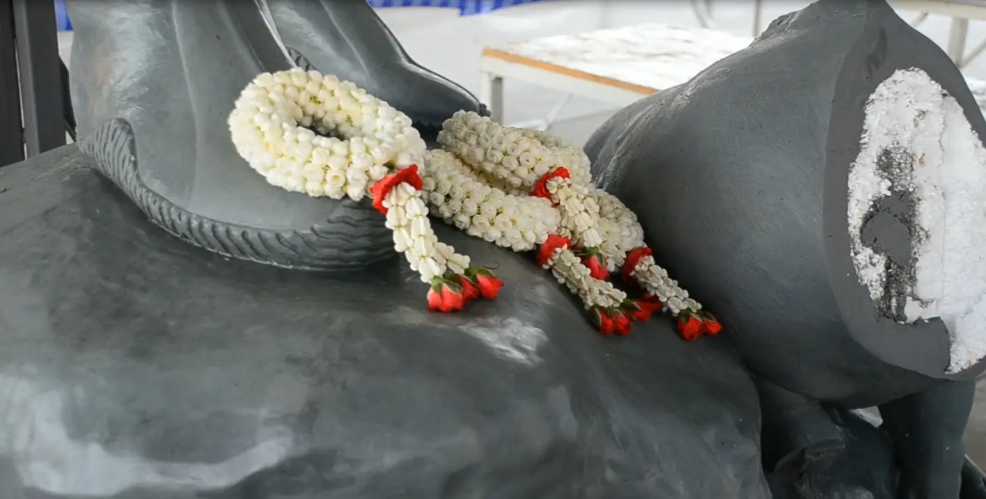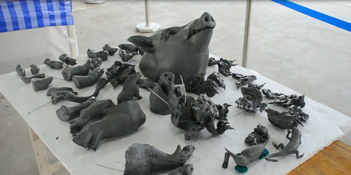วันนี้ (7 ก.ย.61) นายชนะชัย แก้วกล่ำ ผู้เชี่ยวชาญด้านแยกแบบทำพิมพ์หล่อมือหนึ่งของประเทศไทย พร้อมด้วยช่างชุดแยกแบบหุ่นอนุสาวรีย์ นาวาตรีสมาน กุนัน หรือ “จ่าแซม” ฮีโร่ถ้ำหลวง หน่วยซีลนอกราชการ ที่เสียชีวิตขณะเข้าไปช่วยโค้ชและทีมนักเตะเยาวชนทีมหมูป่าอะคาเดมี ขณะติดอยู่ในวนอุทยานถ้ำหลวง- ขุนน้ำนางนอน เมื่อวันที่ 5 กรกฎาคมที่ผ่านมา ได้ตัดแยกแบบหุ่นอนุสาวรีย์จ่าแซมและหมูป่าทั้ง 13 ตัว ที่โรงเหล็กของวัดร่องขุ่นแล้ว โดยเริ่มทำการแยกเอาหมูป่า ตัวแทน 12 นักเตะทีมหมูป่าอะคาเดมี่ และหัวของหมูป่าตัวใหญ่สุดที่เป็นตัวแทนของ “โค้ชเอก” และรายละเอียดเล็ก ๆ ทั้งหมดออกจากกัน และนำมาใส่ไว้ในซิลิโคน ส่วนแบบหุ่นของ “จ่าแซม” ยังไม่ได้ตัดแยก