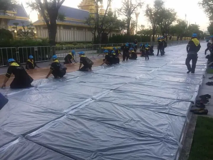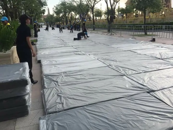 ภายหลังจาก “ในหลวง รัชกาลที่10” ทรงมีความห่วงใย ประชาชนของพระองค์ ทรงมีรับสั่ง ให้นำเบาะมาปู เพื่อใช้ในการรองนั่ง แก้ปัญหาพื้นซีเมนต์ พื้นฟุตบาทร้อน และฝากกำชับ เจ้าหน้าที่ดูแลประชาชน ในวันนี้เจ้าหน้าที่ร่วมกับจิตอาสาได้นำเบาะมาปูให้ประชาชนรองนั่งแล้ว