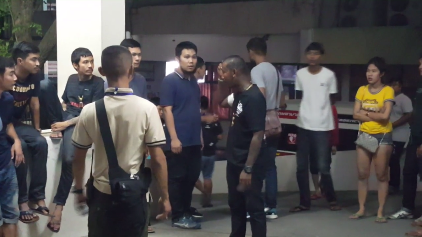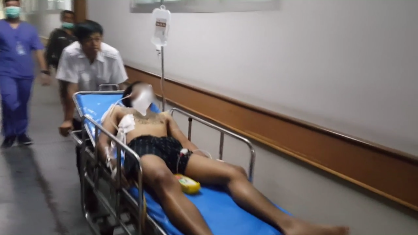 แพทย์ และพยาบาลโรงพยาบาลศูนย์เจ้าพระยายมราช กำลังให้การรักษา นายภูรินทร์ นิลวงษ์ อายุ 20 ปี ถูกยิงด้วยปืนลูกซองเข้าที่ชายโครงขวา จำนวน 7 รู กระสุนฝังในอาการสาหัส และนายสุวัฒน์ ขวัญเรือน หรือโจ๊ก อายุ 30 ปี ถูกยิงด้วยปืนชนิดเดียวกันเข้าที่ต้นแขนขวา 1 รู กระสุนฝังใน โดยมีกลุ่มเพื่อนวัยรุ่น เกือบ 20 คน ยืนรอให้กำลังใจอยู่ที่หน้าโรงพยาบาล ซึ่งทางตำรวจภูธรเมืองสุพรรณบุรี ได้เดินทางเข้าตรวจสอบที่โรงพยาบาลหลังจากได้รับแจ้งจากโรงพยาบาลว่า มีคนถูกอาวุธปืนยิงได้รับบาดเจ็บมารักษาตัว 2 คนขอให้มาสอบสวนผู้บาดเจ็บด้วย