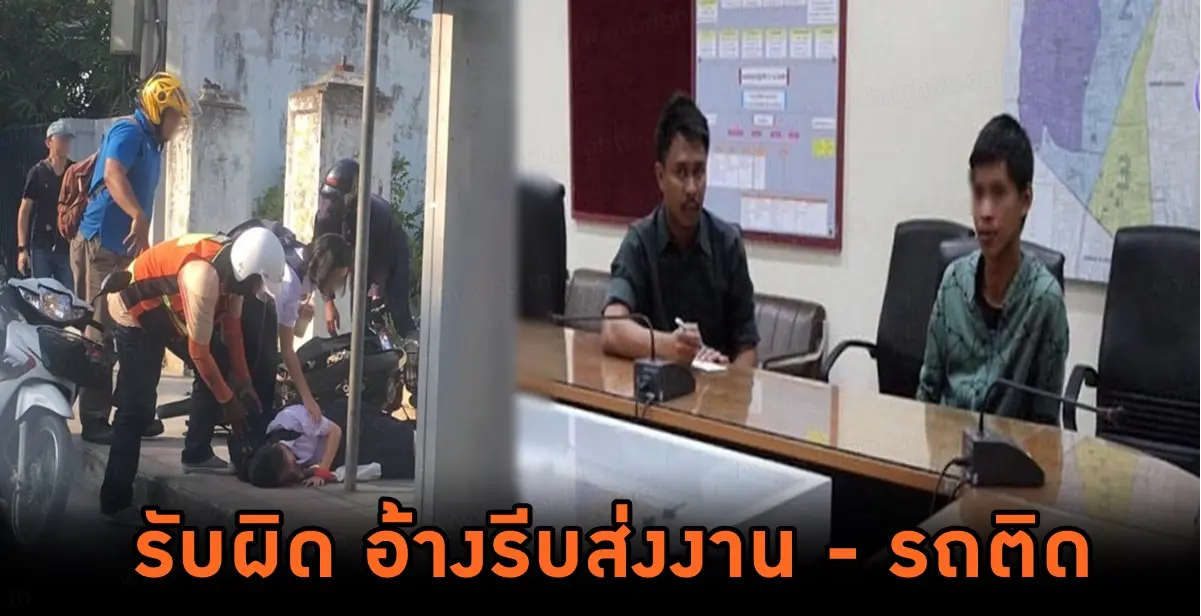 จากกรณีเด็กนักเรียนหญิง รร. บดินทรเดชา3 นอนโอดครวญถูกจักรยานยนต์ขับขี่บนทางเท้าเฉี่ยวชน บริเวณปากซอยลาดพร้าว69 ล่าสุดหนุ่มแมสเซนเจอร์โผล่มอบตัว ขอโทษผู้เสียหาย อ้างรีบส่งงาน-รถติด ตร.สอบปากคำ พร้อมแจ้ง 3 ข้อหาฯ