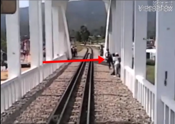 โดยขณะที่รถไฟได้แล่นผ่านได้มีกลุ่มนักท่องเที่ยวจำนวนหลายคนได้ไปยืนเกาะกลุ่มบริเวณปลายสะพานซึ่งใกล้กับรางรถไฟอย่างมากซึ่งขณะนั้นเป็นเวลาที่รถไฟกำลังวิ่งผ่านโดยทางเจ้าหน้าที่ได้บีบแตรไล่และได้ชะลอความเร็วลงอย่างมากแต่กลุ่มนักท่องเที่ยวก็ไม่ได้สนใจบางคนกำลังโพลต์ท่าถ่ายภาพตัวเองคู่กับรถไฟขณะกำลังวิ่งผ่านบ้างบางคนก็ชะโงกหัวออกไปตอนรถไฟวิ่งผ่านซึ่งถือได้ว่าอันตรายเป็นอย่างมากๆ