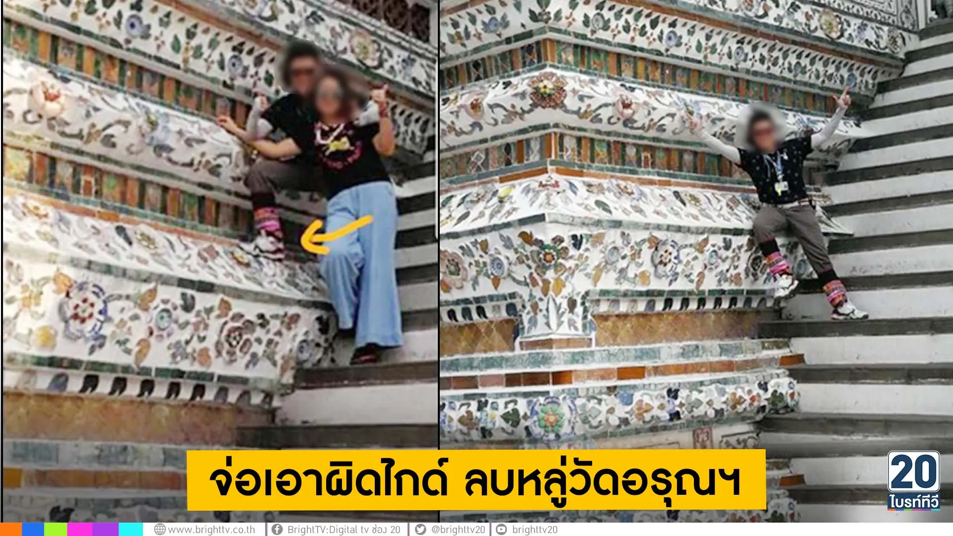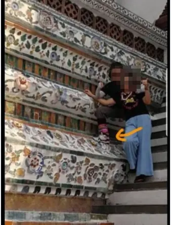 งามหน้าไกด์คนไทยทำเสื่อมขึ้นไปเหยียบฐานกระเบื้องวัดอรุณฯ ถ่ายรูป โซเชียลวิจารณ์หนักไม่เหมาะสม หลายฝ่ายจ่อเอาผิดไม่ให้เห็นเยี่ยงอย่างอีก