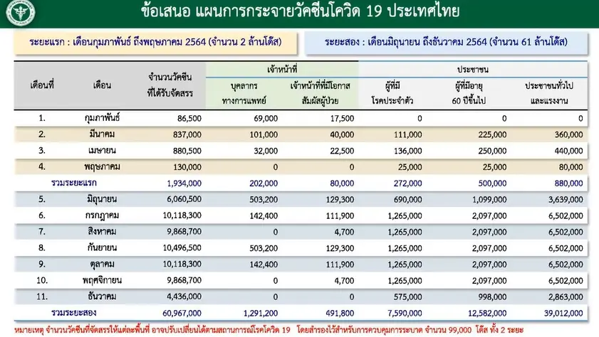 กระทรวงสาธารณสุข เตรียมแผนฉีด วัคซีนโควิด 19 ในระยะเร่งด่วนให้กับบุคลากรแพทย์, ประชาชนผู้สูงอายุ และทั่วไป ช่วงเดือน ก.พ. – เม.ย.64 ในพื้นที่ควบคุมสูงสุดและเข้มงวดประเดิม 10 จังหวัด