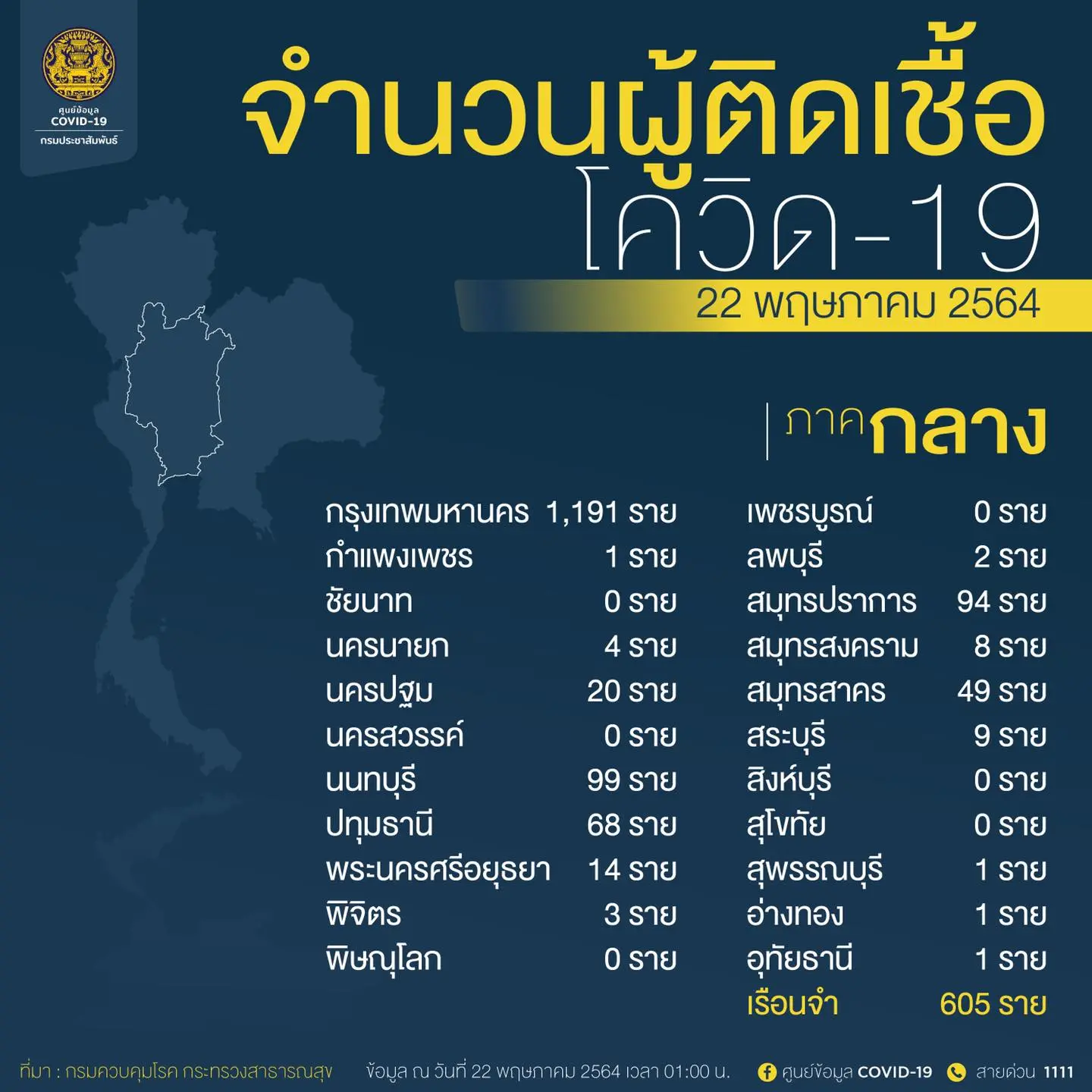 1.กรุงเทพมหานคร พบติดเชื้อวันนี้ 1,191ราย ติดเชื้อสะสม 32,762 ราย