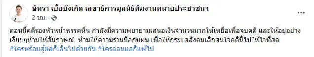 พร้อมกันนี้ แอนนา ยังเผยอีกว่า ได้รับข้อมูลจากทนายตั้ม ว่านายปริญญ์ ได้มีการยื่นข้อเสนอให้ผู้เสียหายแล้ว เพื่อให้เรื่องขอคดีนี้เงียบ แต่ไม่ทราบข้อเสนอที่ยื่นให้กับเหยื่อ พร้อมยืนยันไม่มีเงินยื่นข้อเสนอเข้ามาหาเราสองคนแต่อย่างใด และแม้ถึงมีข้อเสนอมาเงินเท่าไหร่ก็คงประเมินค่าไม่ได้ กับความเสียหายที่ได้รับ