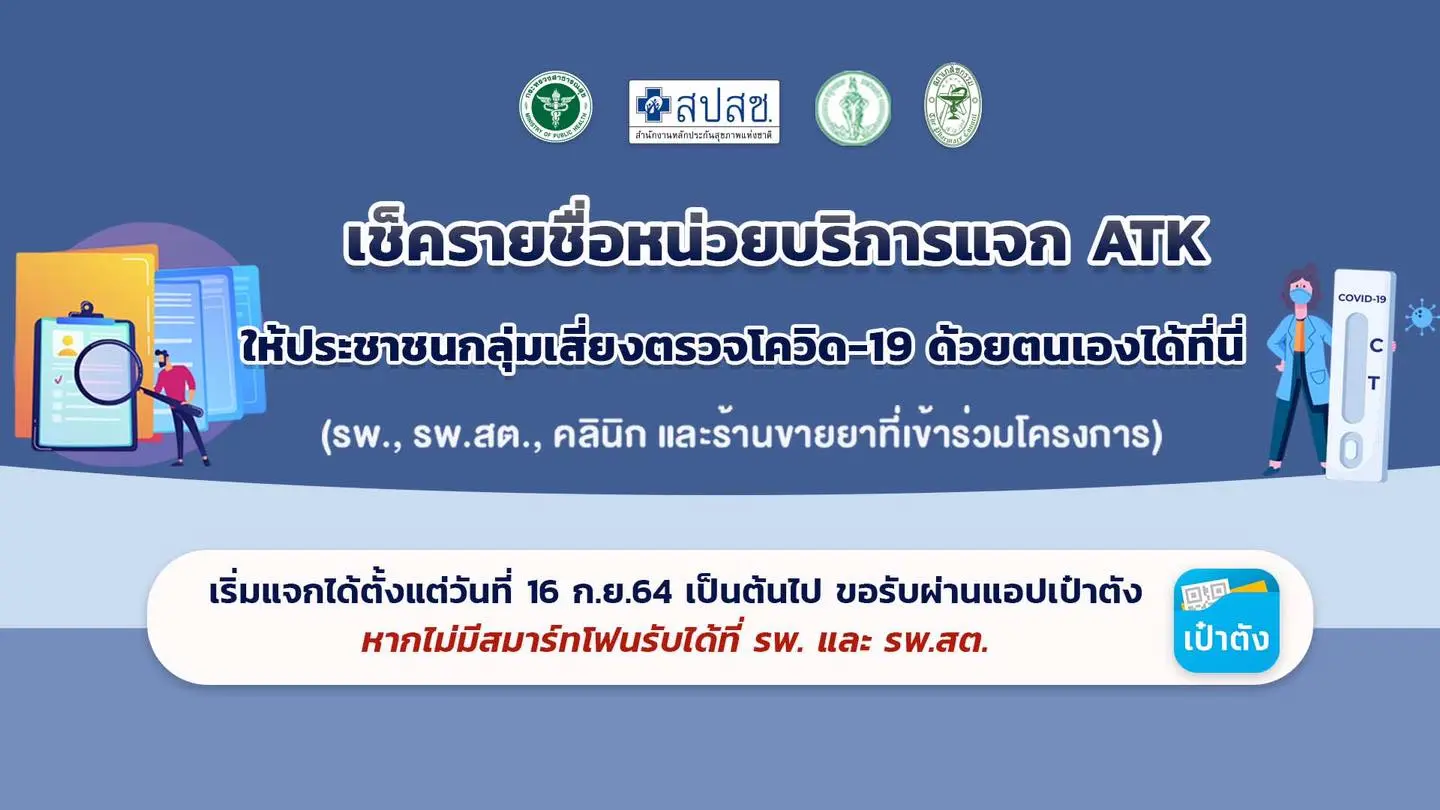 โดยประชาชนที่ลงทะเบียนแล้ว สามารถตรวจสอบรายชื่อหน่วยบริการ ร้านยา ที่สามารถติดต่อขอรับ ชุดตรวจ ATK ด้วยตนเองได้แล้วที่ https://nhso.go.th/page/atk