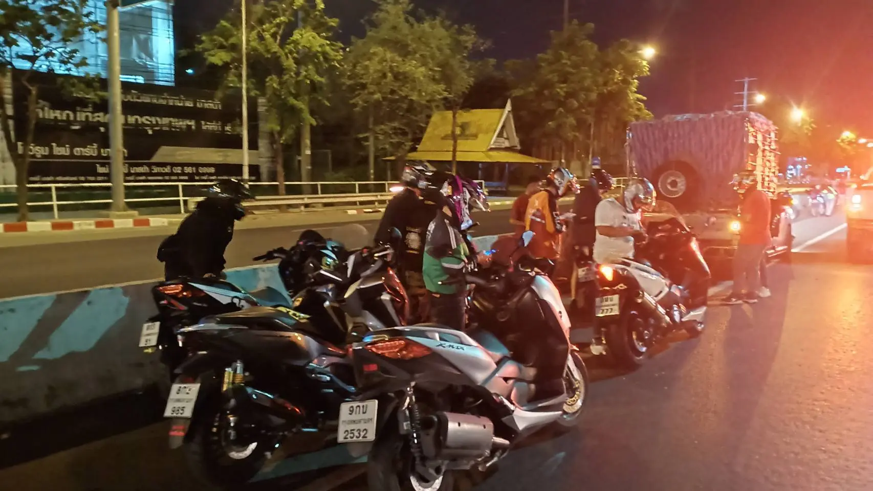 พ.ต.ท.พันษา กล่าวต่อว่า จากการตรวจสอบพบเป็น (1)รถจยย. ยี่ห้อฮอนด้า รุ่นฟอร์ซ่า สีดำคาดเทา ติดสติ๊กเกอร์ BENZ Racing หมายเลขทะเบียน 8กษ985 กรุงเทพมหานคร ขับโดยนายธนฤต อายุ 29 ปี (2)รถจยย. ยี่ห้อยามาฮ่า รุ่นทีแมกซ์ สีขาวคาดดำ หมายเลขทะเบียน อลบ777 กรุงเทพมหานคร ขับโดยนายปรเมษฐ์ อายุ 27 ปี (3)รถจยย. ยี่ห้อยามาฮ่า รุ่นทีแมกซ์ สีเทาคาดดำ ติดสติ๊กเกอร์ BENZ Racing หมายเลขทะเบียน 4กม51 กรุงเทพมหานคร ขับโดยนายอัครกิตติ์ อายุ 33 ปี (4)รถจยย. ยี่ห้อยามาฮ่า รุ่นเอ็กซ์แมกซ์ สีน้ำเงิน ติดสติ๊กเกอร์ BENZ Racing ไม่ติดแผ่นป้ายทะเบียน ขับโดยนายนฤพนธ์ อายุ 26 ปี (5)รถจยย. ยี่ห้อยามาฮ่า รุ่นทีแมกซ์ สีเทา หมายเลขทะเบียน 9กบ2532 กรุงเทพมหานคร ขับโดยนายชวาลกุล อายุ 28 ปี (6)รถจยย. ยี่ห้อยามาฮ่า รุ่นทีแมกซ์ หมายเลขทะเบียน 4กม51 กรุงเทพมหานคร ขับโดยนายอลงกรณ์ อายุ 29 ปี