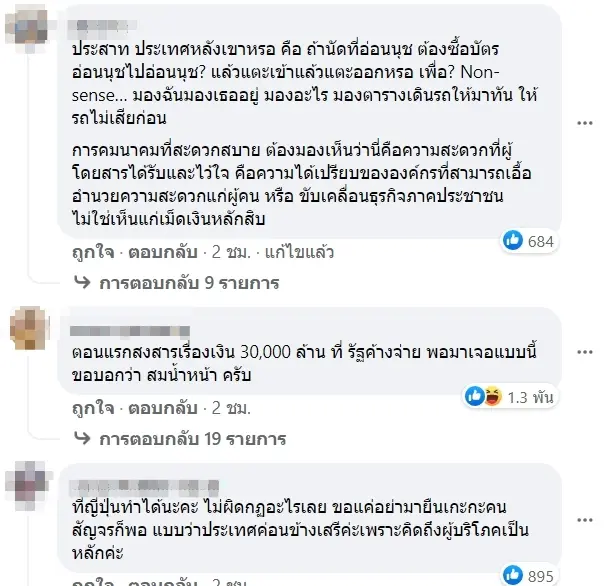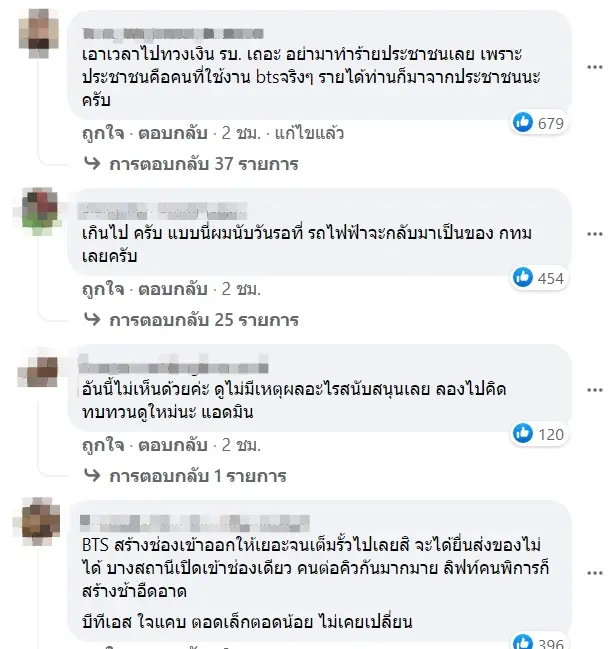 หลังจากที่โพสต์ดังกล่าวได้ถูกเผยแพร่ออกไปก็มีชาวเน็ตหลายรายที่เข้ามาวิพากษ์วิจารณ์ ต่อโพสต์เตือนดังกล่าวของบีทีเอา ซึ่งบางรายได้ระบุข้อความว่า มีเหตุผลอื่นที่มันดูเป็นเหตุเป็นผลมากกว่านี้ไหมครับ เมื่อพิจารณาจากการยื่นร้บ – ส่ง ของที่ว่า ไม่ได้เกิดขึ้นตรงช่องทางแตะบัตรโดยสารเข้า – ออก แต่มันเกิดขึ้นตรงราวกั้น ซึ่งไม่มีใครเดินผ่านเข้าออกและไม่สามารถผ่านเขาออกได้เว้นแต่จะกระโดดข้ามไป หรือเป็นทางเดินผ่านไปยังจุดใด ๆ เพราะเป็นมุมอับดังนั้นถ้าจะบอกว่ากีดขวางผู้โดยสารท่านอื่น ก็ดูเป็นเหตุผลที่ดิบเหมือนไม่ผ่ากระบวนการคิดวิเคราะห์สักเท่าไร , จัดระเบียบอำนวยความสะดวกให้คนที่ต้องส่งของแบบนี้ไม่ดีกว่าเหรอคะ จัดให้มีจุดนัดรับแบบชัดเจนไปเลย ในเมื่อความต้องการของผู้ใช้บริการเป็นแบบนี้ ออกกฎห้ามให้ พนง ในสถานีต้องมาลำบากใจในการทำงานมากขึ้นทำไมกัน