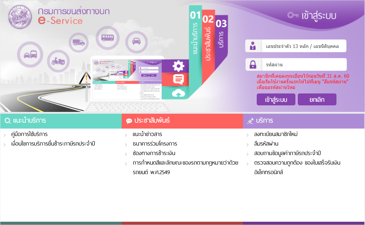 - เว็บไซต์ https://eservice.dlt.go.th/