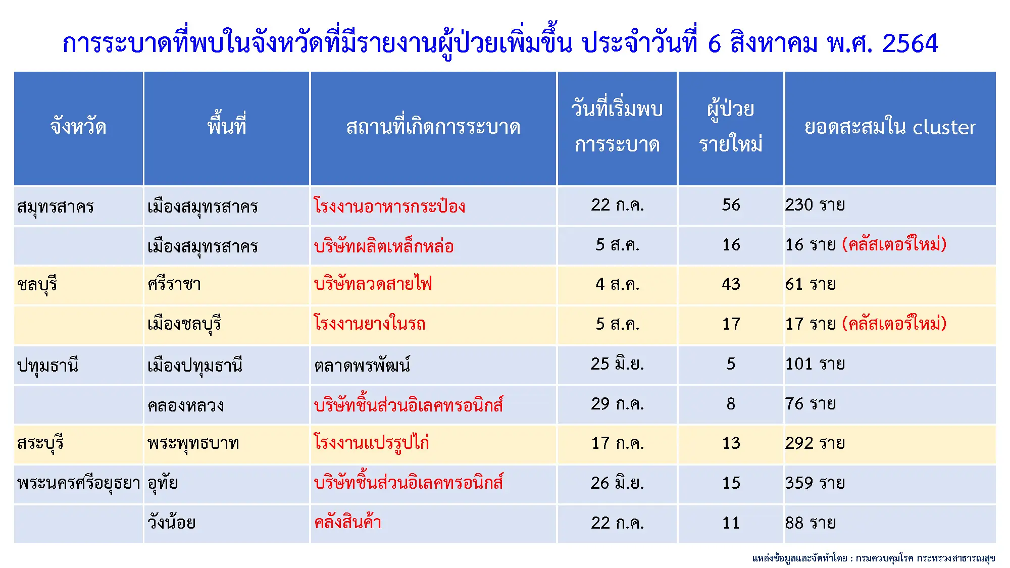- คลัสเตอร์บริษัทผลิตเหล็กหล่อ พบผู้ติดเชื้อ 16 ราย