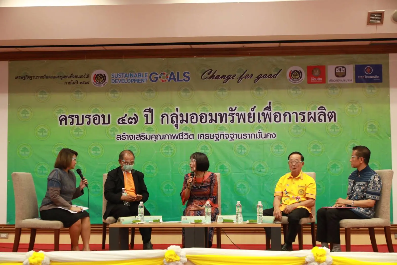 ในการนี้ ได้มีการจัดเวทีเสวนา ในหัวข้อ 47 ปี กลุ่มออมทรัพย์เพื่อการผลิต จากปัจจุบันสู่อนาคตลดความเหลื่ยมล้ำให้ประชาชน โดยมีผู้เข้าร่วมเสวนา ดังนี้ 1.นางวิไลวรรณ ไกรโสดา รองอธิบดีกรมการพัฒนาชุมชน 2.นายสุพจน์ อาวาส คณะทำงานจัดทำยุทธศาสตร์กลุ่มออมทรัพย์เพื่อการผลิต 3.นายบุญศรี จันทร์ชัย ประธานกลุ่มออมทรัพย์เพื่อการผลิต บ้านขอนขว้าง จังหวัดปราจีนบุรี 4.นายสมคิด อเนกวศินชัย ประธานกลุ่มออมทรัพย์เพื่อการผลิต บ้านป่าแดง จังหวัดชลบุรี โดยมีนางสาวกัญญ์ณาณัฏฐ์ ภาธรสืบนุกูล เป็นผู้ดำเนินรายการ