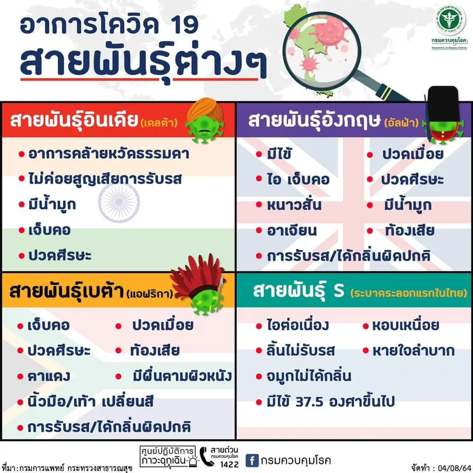 เช่นเดียวกับประเทศไทย ที่ขณะนี้เรากำลังเผชิญกับสถานการณ์ที่ยากจะรับมือ อีกทั้งยังพบตรวจการติดเชื้อของโควิดเดลต้า หรือโควิดสายพันธุ์อินเดีย ที่จำนวนการติดเชื้อเพิ่มขึ้นเรื่อย และความน่ากลัวของเชื้อตัวนี้คือ แพร่ระบาดได้เร็วขึ้น และแสดงอาการคล้ายกับปวดเป็นไข้หวัดใหญ่ธรรมดา ทั้งนี้ เชื้อโควิดแต่ละตัวมีอาการคล้ายกัน แต่ก็มีความแตกต่างที่สามารถสังเกตได้
