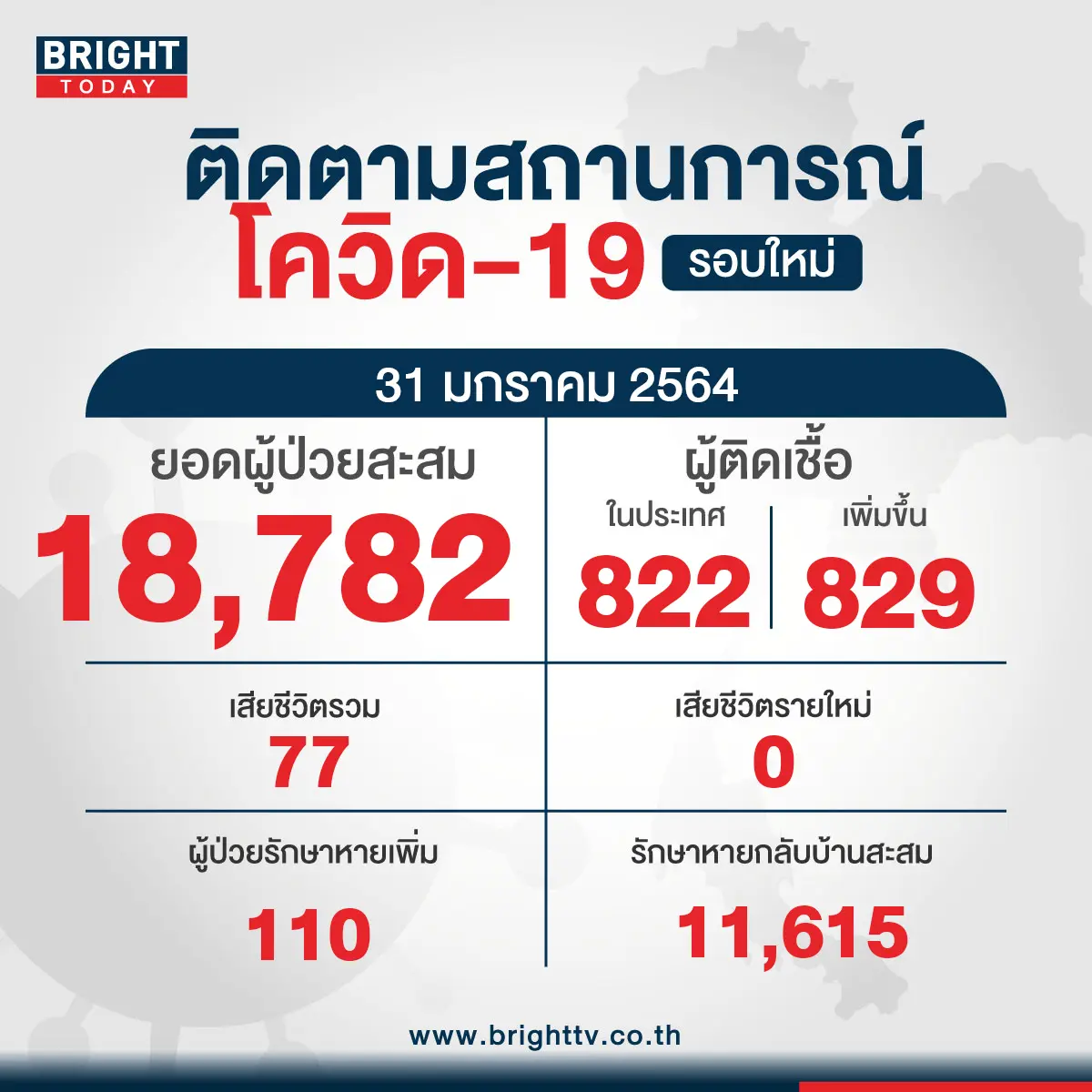 โควิดวันนี้ (31 ม.ค.64) หมอบุ๋ม พญ.พรรณประภา ยงค์ตระกูล ผู้ช่วยโฆษกศูนย์บริหารสถานการณ์การแพร่ระบาดของโรคติดเชื้อไวรัสโคโรนา (โควิด-19) หรือ ศบค. แถลงสถานการณ์รายวัน ดังนี้