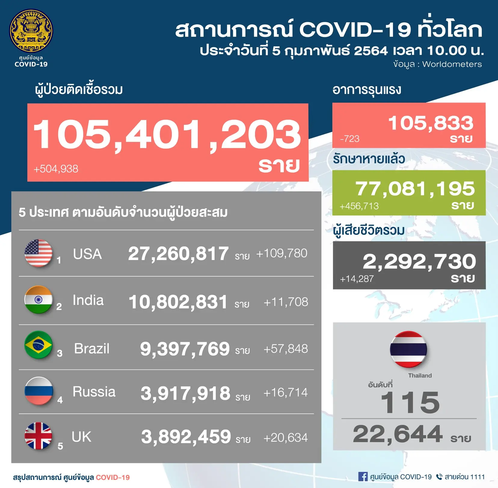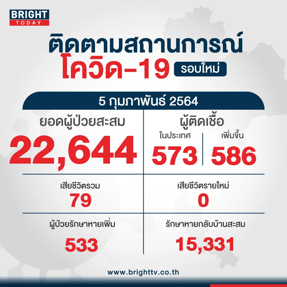 โควิดวันนี้ (5 ก.พ. 64) พญ.อภิสมัย ศรีรังสรรค์ หรือ หมอเบิร์ท ผู้ช่วยโฆษกศูนย์บริหารสถานการณ์การแพร่ระบาดของโรคติดเชื้อไวรัสโคโรนา 2019 (โควิด-19) หรือ ศบค. แถลงสถานการณ์การติดเชื้อโควิดวันนี้