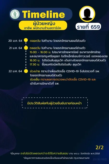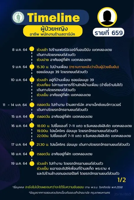 เปิดไทม์ไลน์ประวัติผู้ป่วยติดเชื้อ โควิดกรุงเทพ รายที่ 659 เป็นผู้ป่วยหญิง อาชีพพนักงานร้านกาแฟแบรนด์ดังระดับโลก
