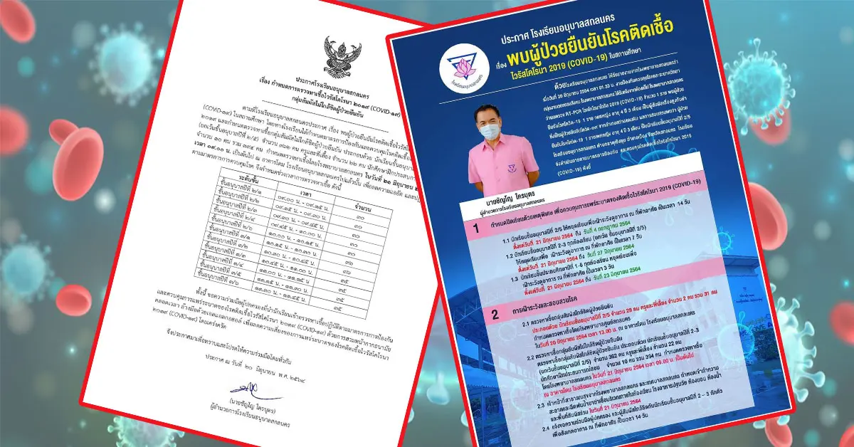 - นอกจากนี้ยังเตรียมการตรวจเชื้อกลุ่มสัมผัสที่ไม่ใกล้ชิดผู้ป่วยยืนยัน จำนวน รวม 394 คน แบ่งเป็น นักเรียนชั้นอนุบาลปีที่ 2 และอนุบาล 3 จำนวน 362 คน ครูและพี่เลี้ยง จำนวน 22 คน นักศึกษาฝึกประสบการณ์สอน จำนวน 10 คน ในวันที่ 21 มิถุนายน เวลา 09.00 น. เป็นต้นไป ณ อาคารโดม โรงเรียนอนุบาลสกลนคร