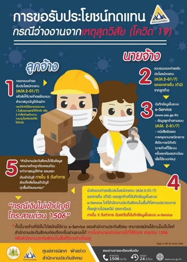 กรณีมีข้อสงสัยสอบถามเพิ่มเติมได้ที่สายด่วนประกันสังคม 1506 ตลอด 24 ชั่วโมง
