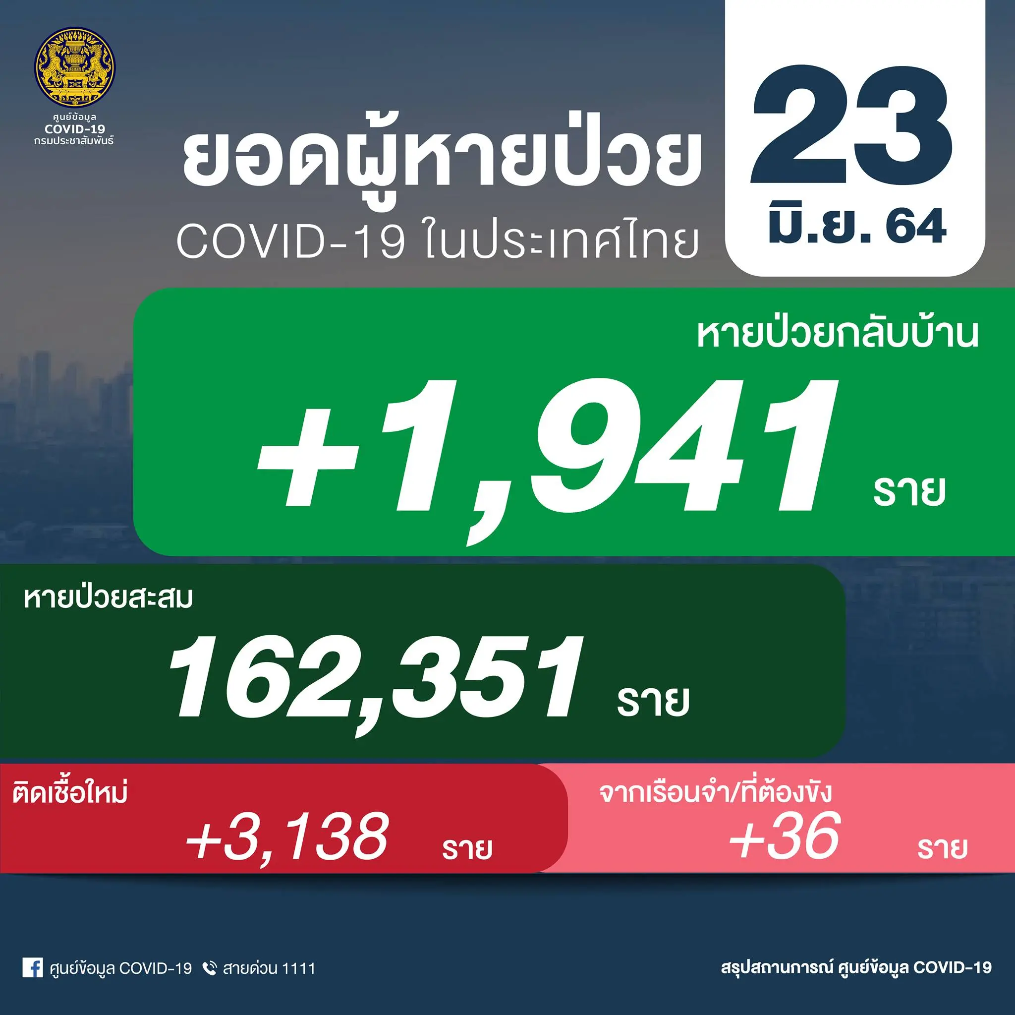 ทั้งนี้ยอดผู้ป่วยที่หายป่วย สามารถกลับบ้านได้ เป็นจำนวน 1,941 ราย ทำให้ยอดผู้ผู้ป่วยที่หายป่วยสะสมนับตั้งแต่เดือนเมษายนที่ผ่านมาเป็นจำนวน 162,351 ราย
