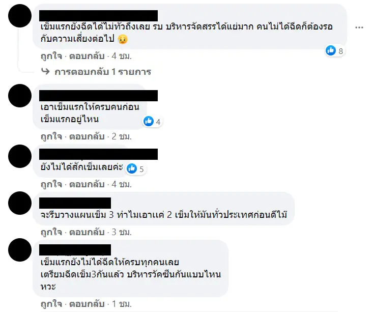 หลังจากประเด็นฉีดวัคซีนโควิด-19 ถูกแพร่ออกไปนั้น ด้านชาวเน็ตบ้างส่วนคอนเมนท์ต้นพ้อว่า “เข็มแรกยังฉีดไม่ครอบคุมประเทศเลย” ซึ่งบางก็บอกว่าระบบการจัดการยังไม่ดีพอ เพราะมีอีกหลายเสียงที่พูดเป็นเสียงเดียวกันว่า ยังไม่ได้รับวัคซีนเข็มแรกเลย และอยากให้จัดสรรวัคซีนเข็มแรกให้ประชาชนได้ทั่วกันเสียก่อน