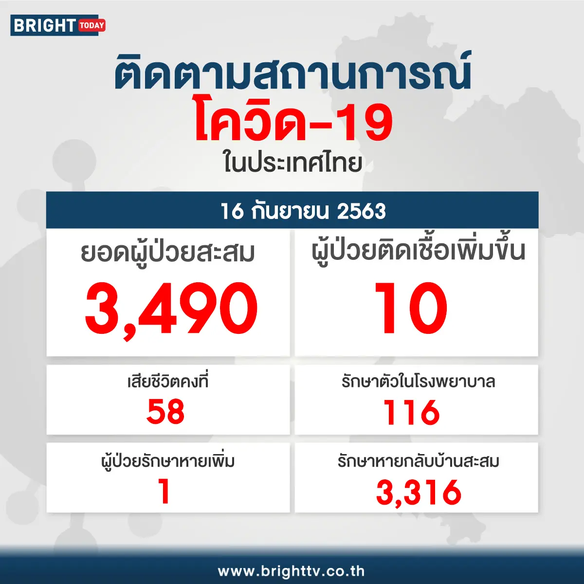 ศูนย์ข้อมูล COVID-19 รายงานสถานการณ์การติดเชื้อ โควิด19 ในประเทศไทย วันพุธที่ 16 กันยายน 2563 ดังนี้