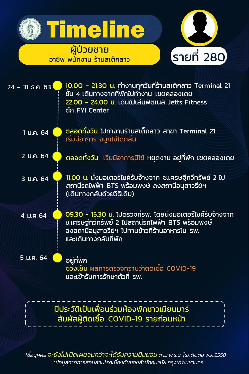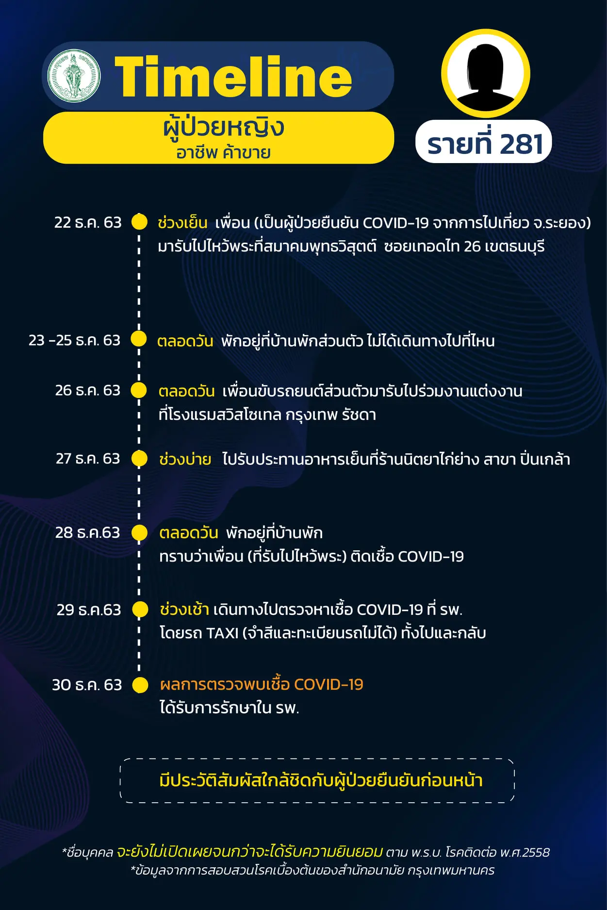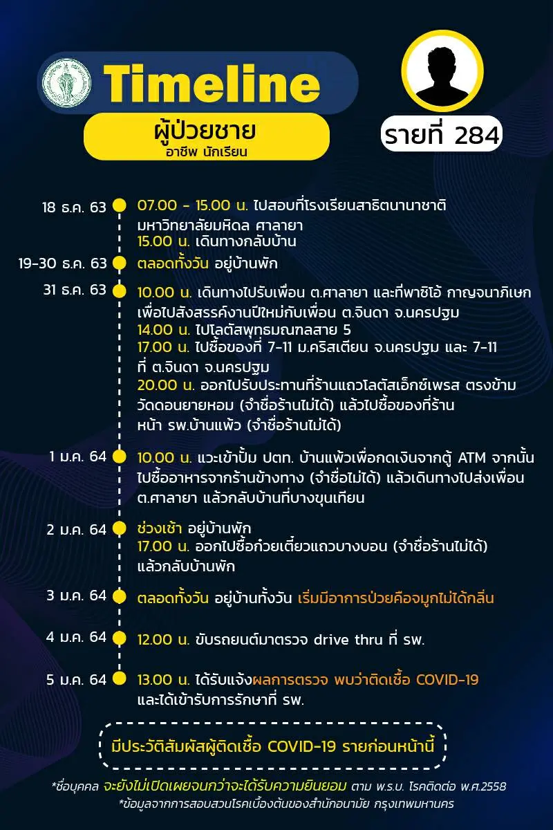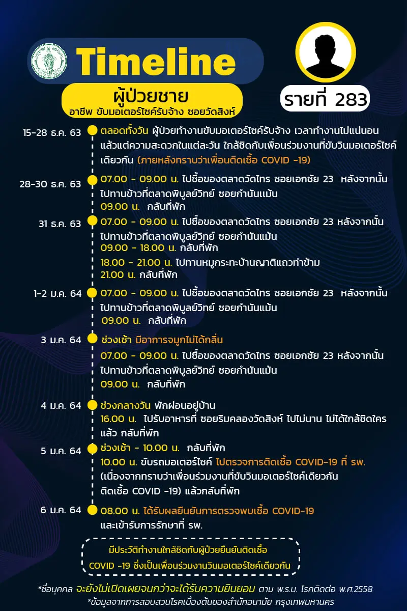Timeline แถลงไปแล้ว 278 ราย และวันนี้ มี Timeline ผู้ติดเชื้อที่อยู่ใน กทม. ซึ่งได้สอบสวนโรคเสร็จเรียบร้อยแล้ว เพิ่มอีก 14 ราย