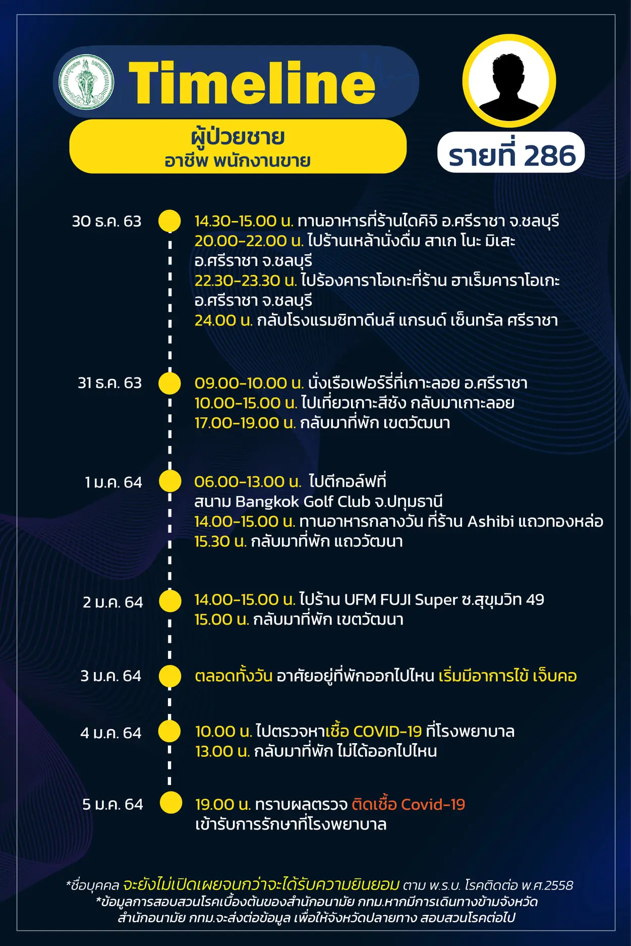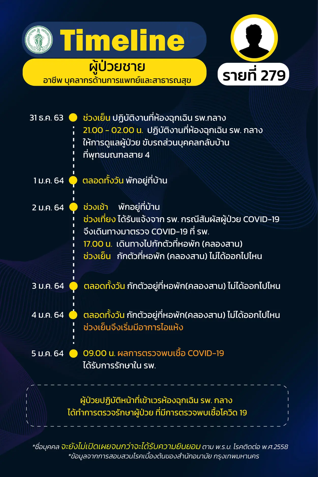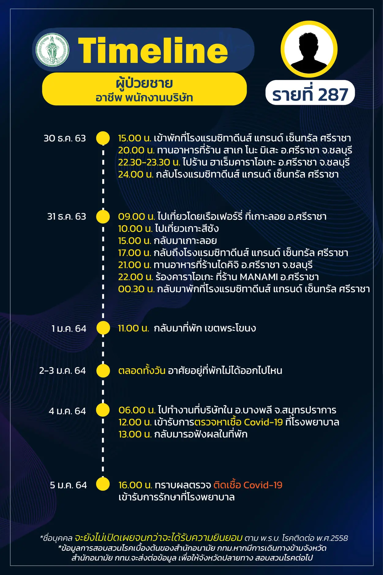 Timeline แถลงไปแล้ว 278 ราย และวันนี้ มี Timeline ผู้ติดเชื้อที่อยู่ใน กทม. ซึ่งได้สอบสวนโรคเสร็จเรียบร้อยแล้ว เพิ่มอีก 14 ราย