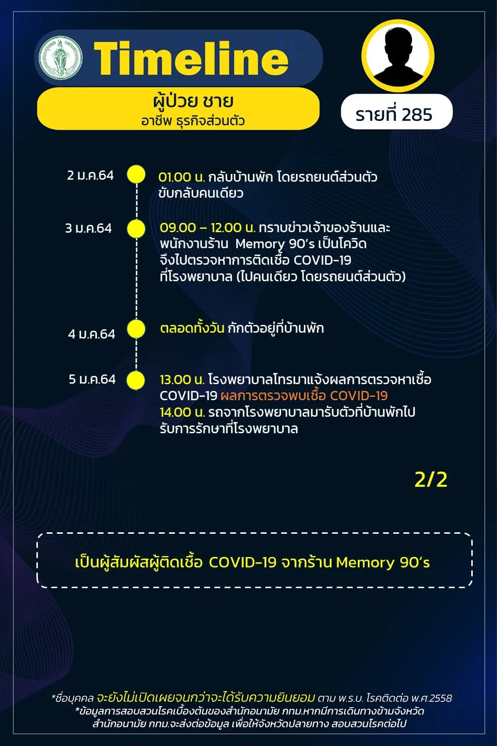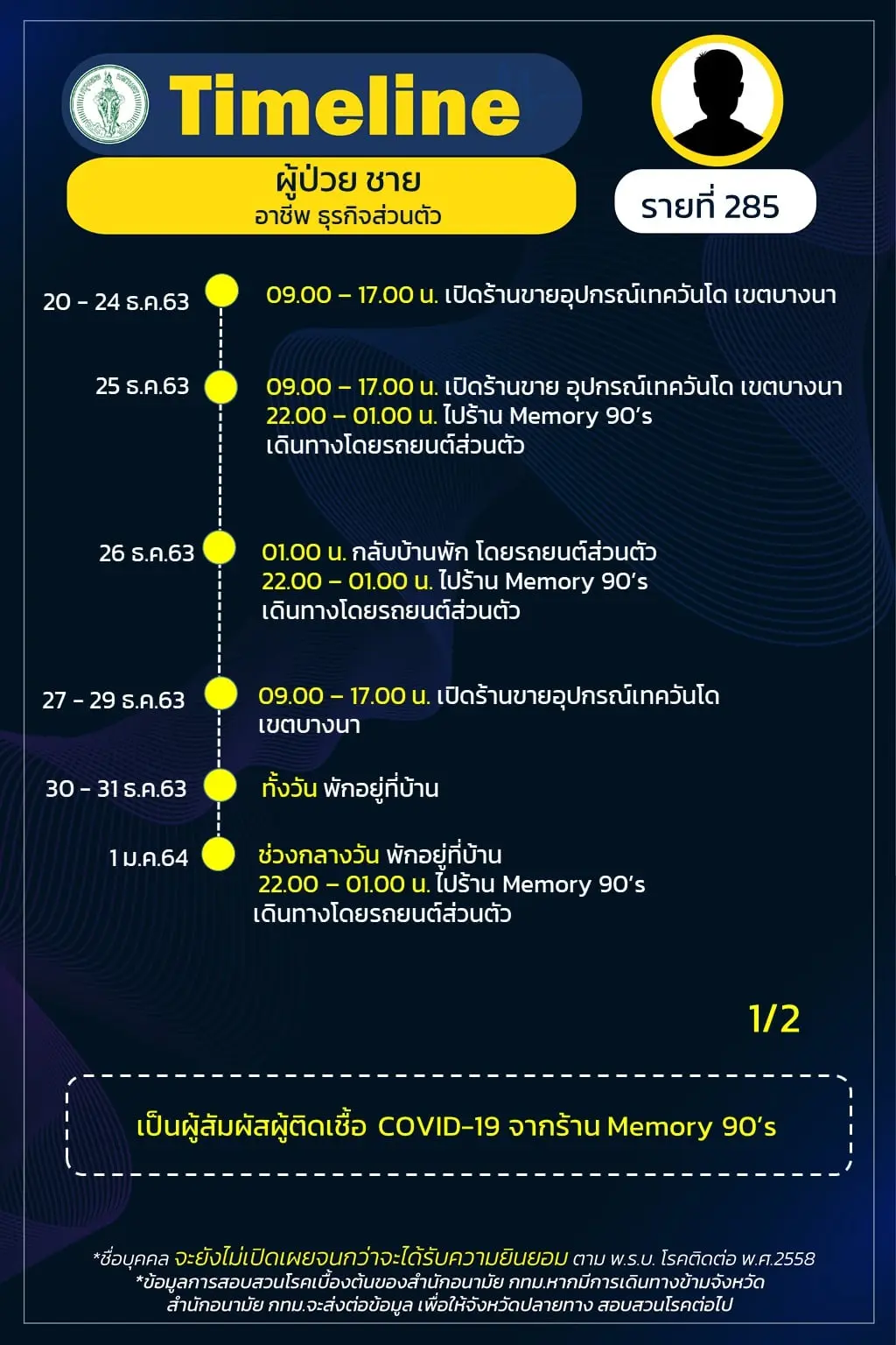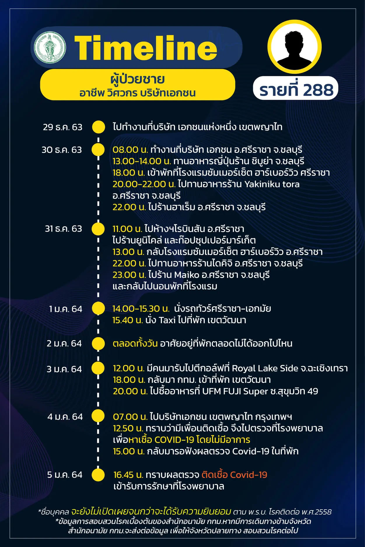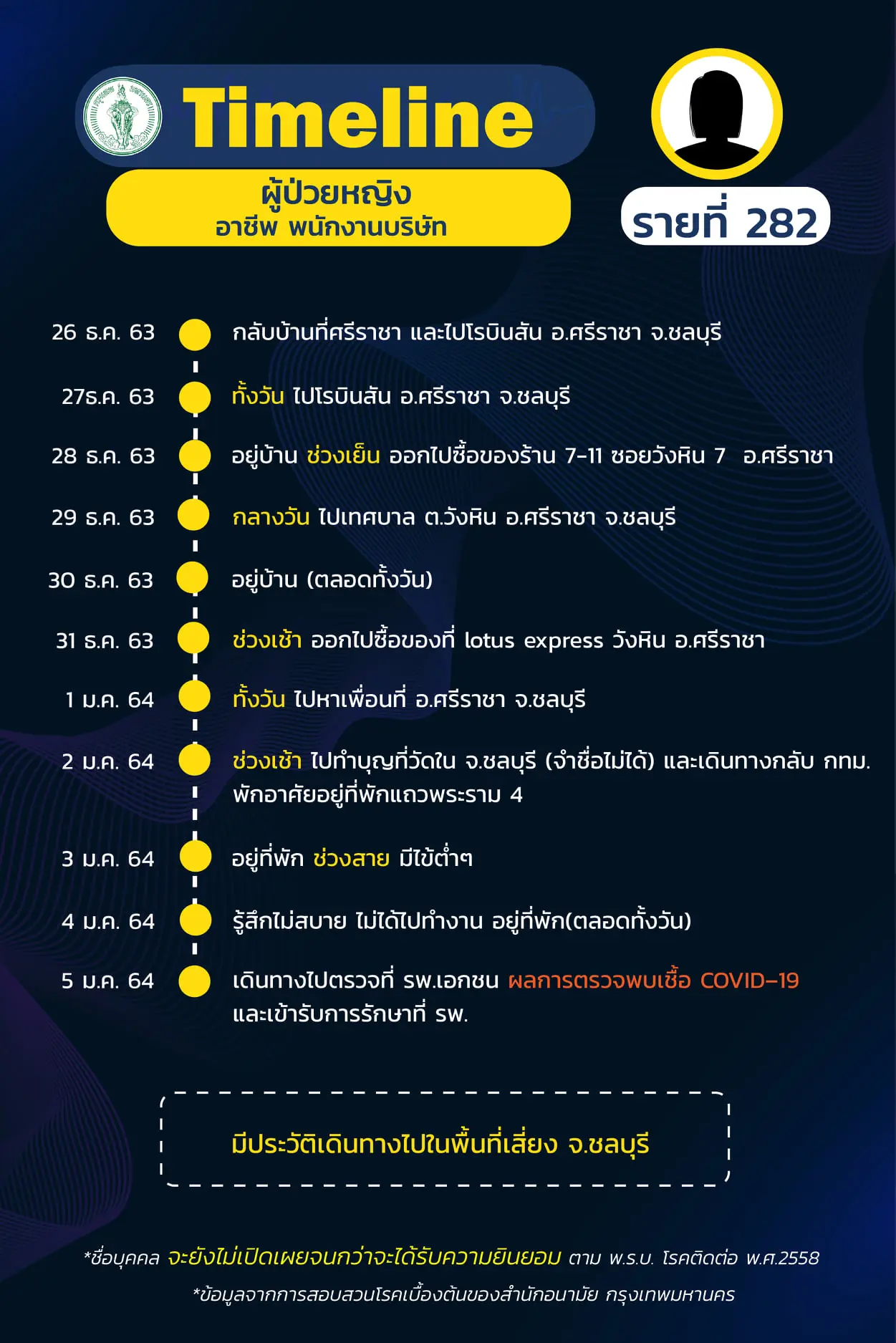 Timeline แถลงไปแล้ว 278 ราย และวันนี้ มี Timeline ผู้ติดเชื้อที่อยู่ใน กทม. ซึ่งได้สอบสวนโรคเสร็จเรียบร้อยแล้ว เพิ่มอีก 14 ราย