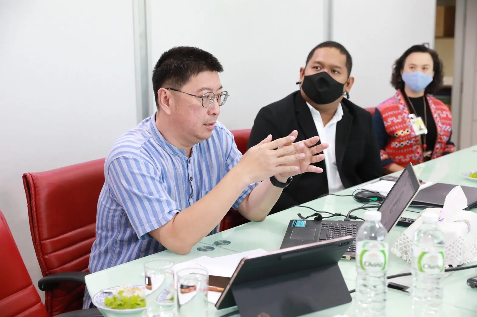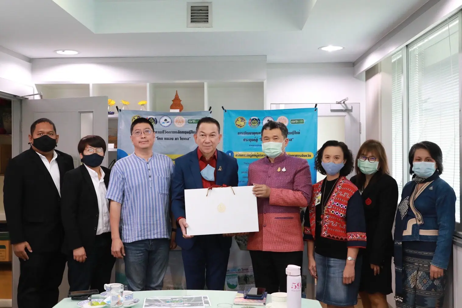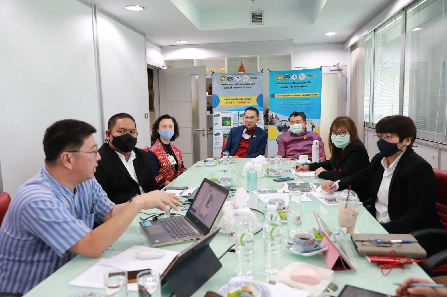 นายสุทธิพงษ์ จุลเจริญ อธิบดีกรมการพัฒนาชุมชน ร่วมประชุมหารือ นายภาณุพล รัตนกาญจนภัทร ผู้ว่าการการยาสูบแห่งประเทศไทย และคณะ ในการดำเนินงานขับเคลื่อนโครงการพัฒนาพื้นที่ต้นแบบการพัฒนาคุณภาพชีวิต ตามหลักทฤษฎีใหม่ประยุกต์สู่ “โคก หนอง นา โมเดล” ตามกลไกการขับเคลื่อนสืบสานศาสตร์พระราชาเพื่อการปฏิรูปประเทศ ในพื้นที่ของยาสูบแห่งประเทศไทย ด้วยการน้อมนำแนวพระราชดำริของพระบาทสมเด็จพระเจ้าอยู่หัวรัชกาลที่ 9 มาสืบสาน รักษา และต่อยอด ภายใต้แนวพระราชดำริ” เพื่อวางแผนในการพัฒนาคน พัฒนาทีม สร้างพื้นที่ต้นแบบ โดยมี ทีมที่ปรึกษา ผศ.พิเชฐ โสวิทยสกุล หรือ อ.โก้ และ รศ.วรวรรณ โรจนไพบูลย์ หรือ อ.หน่า สถาบันเทคโนโลยีพระจอมเกล้าเจ้าคุณทหารลาดกระบัง ร่วมให้ข้อมูล ณ ห้องรับรองอธิบดี ชั้น 5 กรมการพัฒนาชุมชน