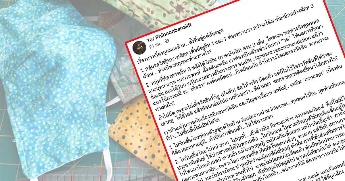 นพ.ธนะพันธ์ พิบูลย์บรรณกิจ โรงพยาบาลพระมงกุฎเกล้า โพสต์เตือน! ไม่ควรใส่ “แมสก์ผ้า” เพราะ ปัองกันเชื้อออก ไม่กันเชื้อเข้าคงไม่พอ หน้ากากหลุดเมื่อไร เสี่ยงเมื่อนั้น
