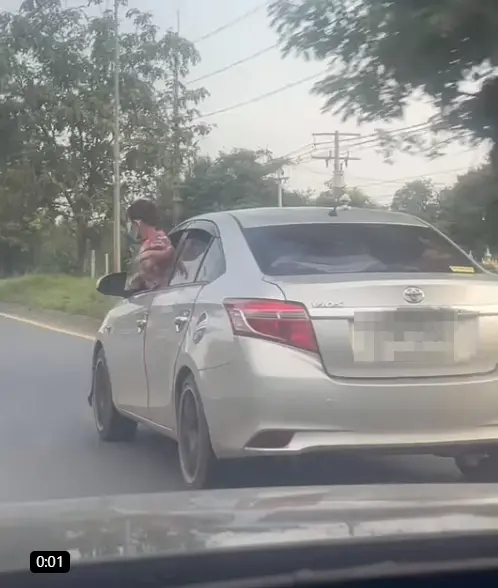 ชาวเน็ตวิจารณ์หนัก หลังโลกออนไลน์แชร์คลิป ผู้ปกครองปล่อยเด็ก โผล่หน้าออกนอกตัวรถ หวั่นอุบัติเหตุจากความประมาท
