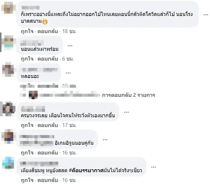 หลังจากที่เรื่องราวได้ถูกแชร์ต่ออกไปเรื่อยๆ ก็ได้มีชาวเน็ตต่างเข้ามาแสดงความคิดเห็นมากมาย อาทิ อรรถประโยชน์ศาลาของจริง งานบุญงานบวชเกิดแก่เจ็บตาย, สงสัยไม่มีใครกล้าออกจากบ้าน กลัวต้องไปรพ.สนาม รอบนี้ยอดลดแน่แน่ สุดยอดจริง, ครบวงจรเลย เตือนใจคนให้ระวังตัวเองมากขึ้น