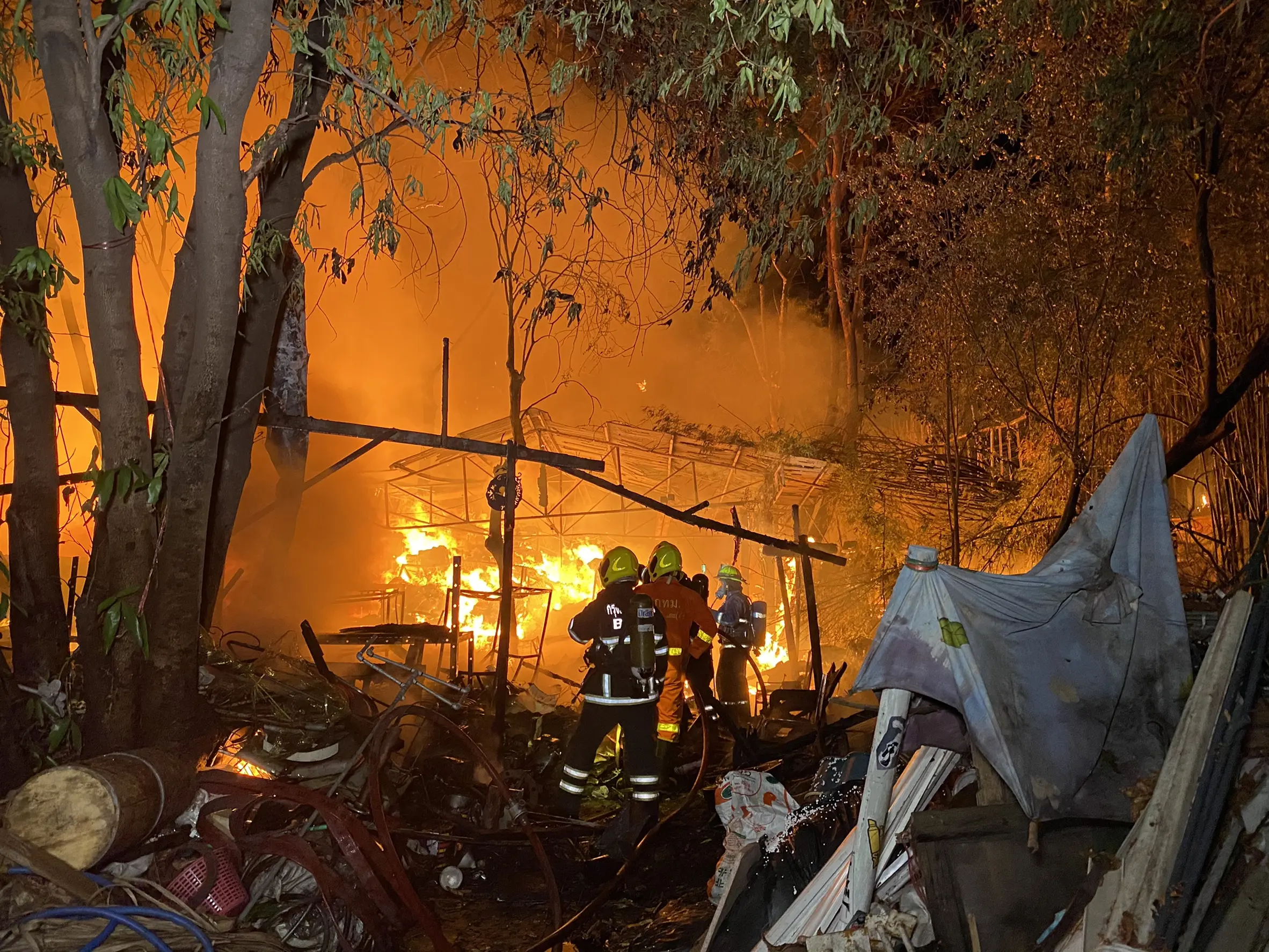เนื่องจากสามารถเข้าไปข้างในได้เพียงแค่ทางเดียว และสถานที่เกิดเพลิงไหม้อยู่ติดกับหมู่บ้านด้วย เกรงว่าจะลุกลามเข้าหมู่บ้านที่อยู่ติดกัน เจ้าหน้าที่พยายามระดมฉีดน้ำนานกว่า1 ชั่วโมงครึ่งเพลิงจึงสงบ โดยเจ้าหน้าที่ยังคงฉีดน้ำเลี้ยงอย่างต่อเนื่องเพื่อป้องกันไม่ให้ไฟปะทุขึ้นมาอีก