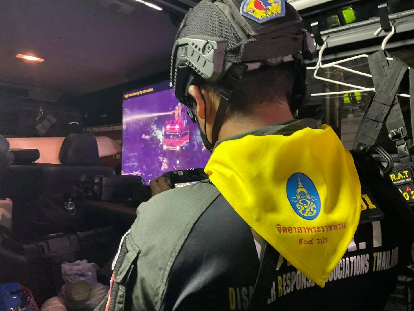 นอกจากเจ้าหน้าที่ดับเพลงที่ได้ทุ่มเทเสียสละเพื่อสกัดเพลิงแล้วยังมีอีกหนึ่งฮีโร่ที่เข้ามาสนับสนุนการทำงานของเจ้าหน้าที่ดับเพลิงคือ สมาคมตอบโต้ภัยพิบัติ ที่นำ โดรนติดกล้องตรวจจับความร้อน บินหาพิกัดวาล์วกำเนิดเปลวเพลิงเพื่อวางแผนปิดวาล์ว โดยใช้น้ำ-โฟมฉีดสกัดเพลิง ให้ไฟลดลง-อยู่ในวงจำกัด และให้นักผจญเพลิงเข้าไปปิดวาล์วสารเคมีได้