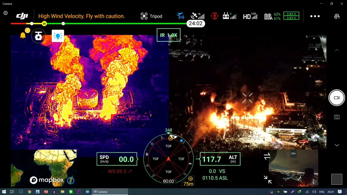 อีกทีมสนับสนุน ฮีโร่บินโดรนกู้ภัย หนึ่งทีมช่วยเจ้าหน้าที่ หาช่องทาง วางแผน ปิดวาล์ว ส่งจนท.สกัดเพลิง โรงงานกิ่งแก้ว