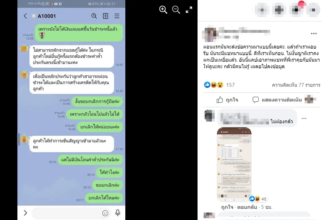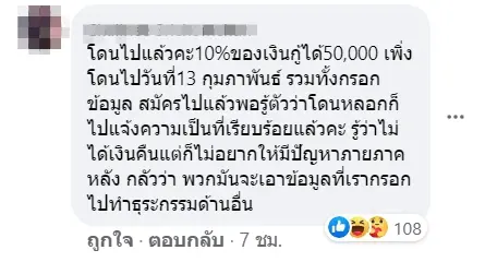 บางคนก็จะโดนพวกมันขู่ว่า มันรู้เลขบัญชีเราแล้ว ถึงเราไม่กู้มันจะตัดบัญชีเราอัตโนมัติ 10% ทุกเดือน ถ้าจะยกเลิกสัญญา ต้องเอาบัตรประชาชนไปสำนักงานใหญ่มันเท่านั้น ไม่รู้ว่าสำนักงานมีจริงมั้ยก็ไม่รู้