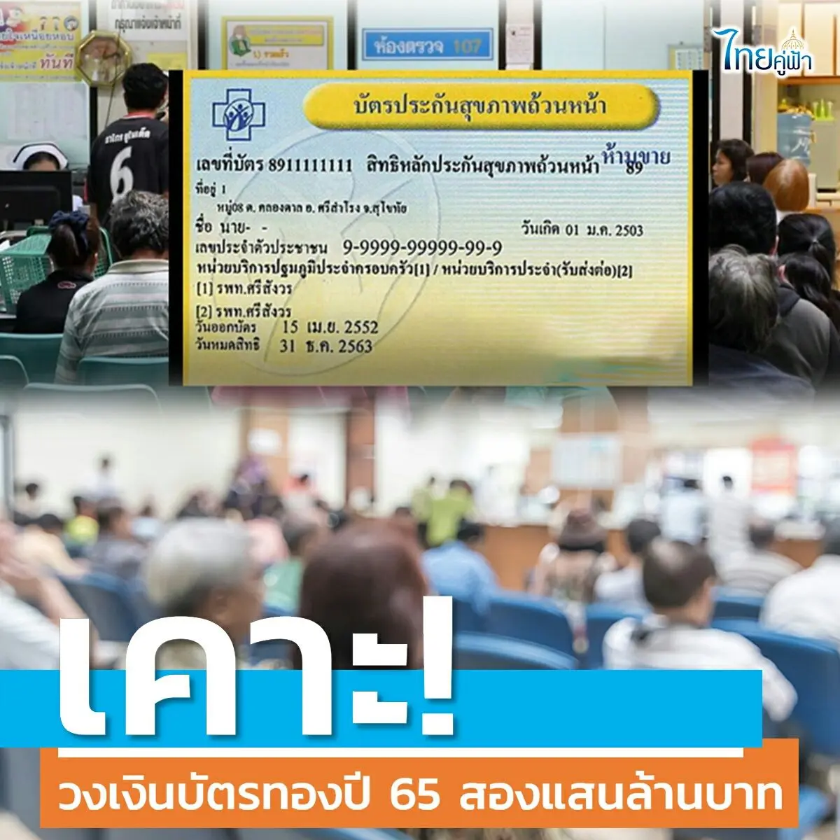 บัตรทอง — กองทุนหลักประกันสุขภาพแห่งชาติ จัดสรรงบประมาณ ปี 2565 วงเงินรวมกว่า 201 แสนล้านบาท ซึ่งจะทำให้คนไทยทุกคนสามารถ เข้าถึงบริการสาธารณสุขได้อย่างทั่วถึง โดยมีรายการต่าง ๆ ดังนี้