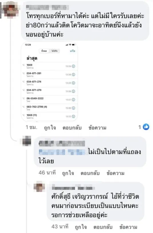 รายแรกบอกว่า “ไอ้ที่ชีวิตคนมาก่อนระเบียบคืออะไร” ทีมงานตรวจแล้วค้นอีก หาอย่างไรก็ไม่เจอรู้ภายหลังว่าติดต่อผิดช่องทาง จึงแจ้งให้ติดต่อตามช่องทางพร้อมทั้งหาแนวทางช่วยเหลือกัน