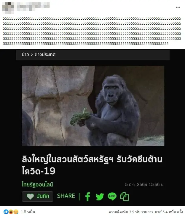 ชาวเน็ตแห่แสดงความคิดเห็นข่าว ลิงใหญ่ สวนสัตว์สหรัฐฯ ฉีดวัคซีนโควิด ตั้งแต่วันที่ 5 มีนาคม เทียบคุณภาพชีวิตลิงยังดีกว่าอีก