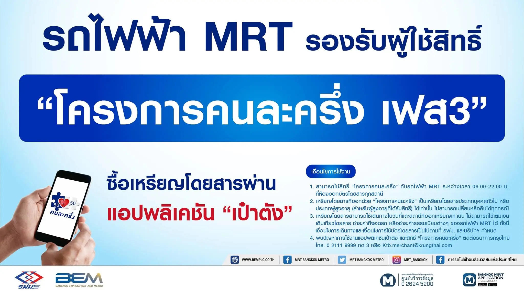 MRT รองรับผู้โดยสารใช้สิทธิ์โครงการ “คนละครึ่ง เฟส 3”