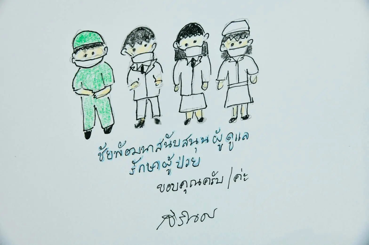 เปิดภาพวาดฝีพระหัตถ์ กรมสมเด็จพระเทพฯ ให้กำลังใจบุคลากรทางการแพทย์ ในนามมูลนิธิชัยพัฒนาและกองทุนชัยพัฒนาสู้ภัยโควิด-19