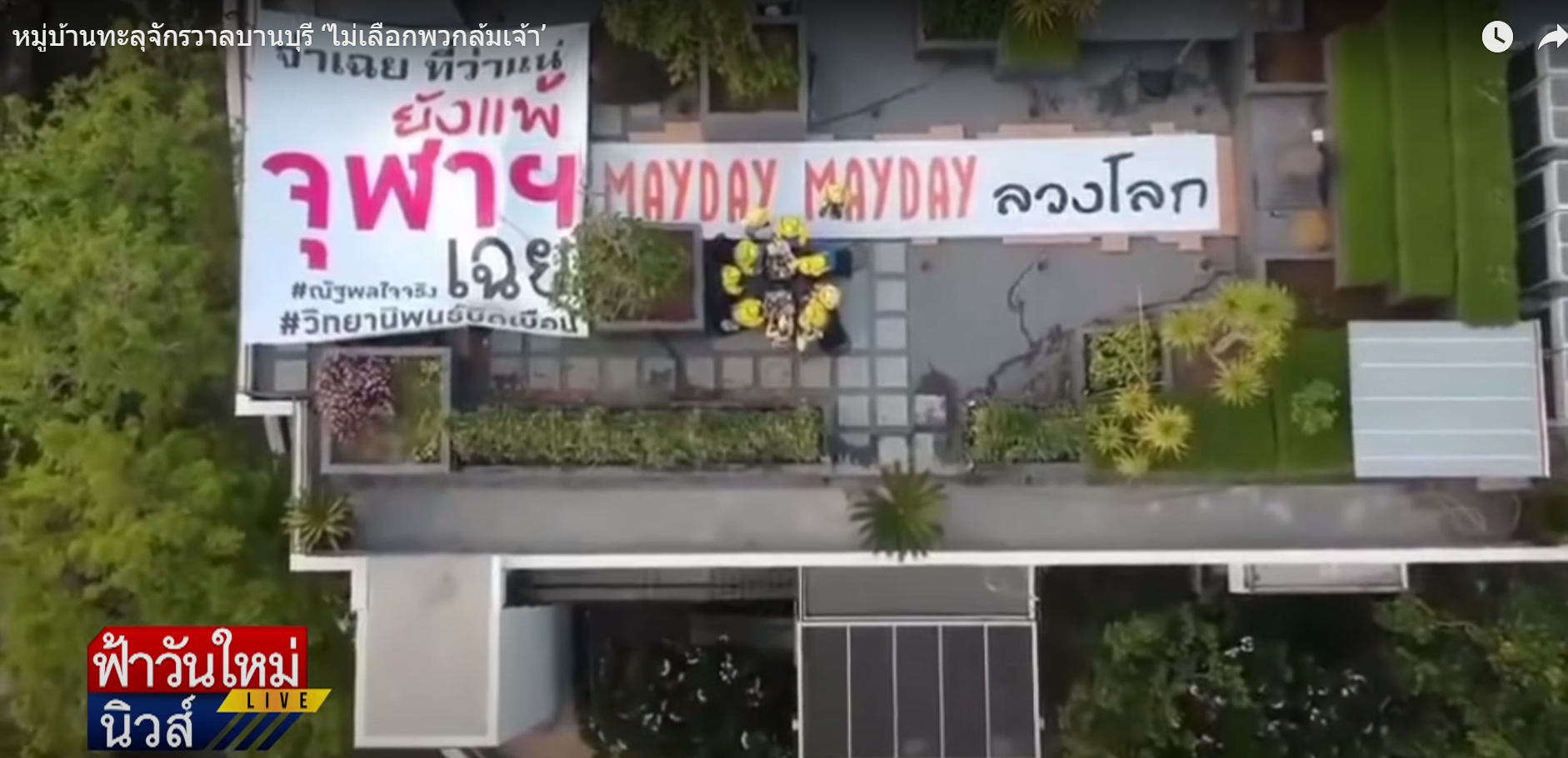 ขณะที่ในโลกโซเชียลได้มีการแชร์คลิปของบ้านหรูที่เกิดเหตุเพลิงไหม้ดังกล่าว ซึ่งคลิปดังกล่าวได้มีการอัพโหลดในช่องของ Bluesky Channel สํารอง เมื่อวันที่ 1 เม.ย.64 หรือเพียง 2 วันก่อนเกิดเหตุเพลิงไหม้ โดยคลิปดังกล่าวมีชื่อว่า “หมู่บ้านทะลุจักรวาลบานบุรี ไม่เลือกพวกล้มเจ้า”