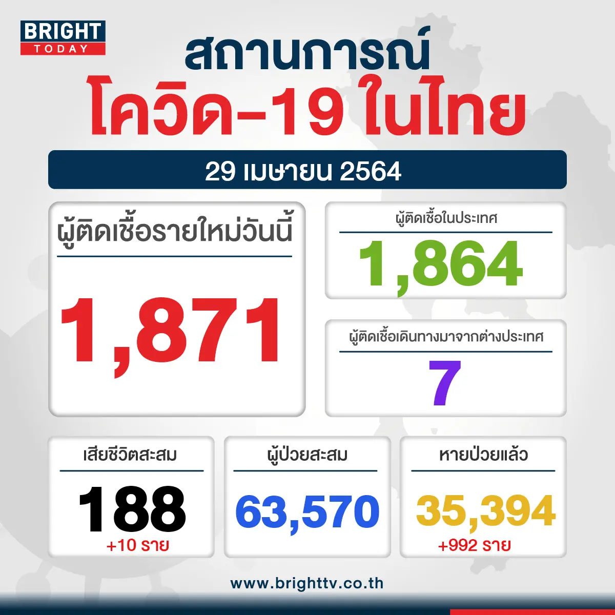 29 เม.ย. 64 นายแพทย์ทวีศิลป์ วิษณุโยธิน โฆษกศูนย์บริหารสถานการณ์การแพร่ระบาดของโรคติดเชื้อไวรัสโคโรนา 2019 (โควิด-19) หรือ ศบค. แถลงข่าวจากทำเนียบรัฐบาล รายงานสถานการณ์ผู้ติดเชื้อโควิด-19 ในประเทศไทย