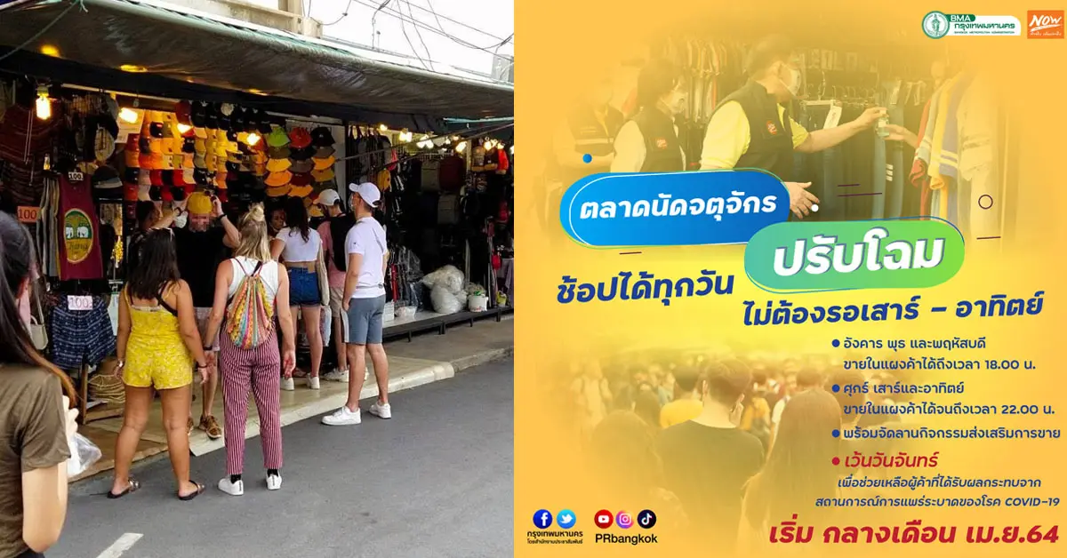 เตรียมเฮ! กทม.ไฟเขียน จตุจักร เปิดแผงขายได้สัปดาห์ละ 6 วัน ช่วยเหลือผู้ค้า ศุกร์-อาทิตย์ เปิดถึง 4 ทุ่ม หยุดวันจันทร์ เริ่มกลางเมษานี้