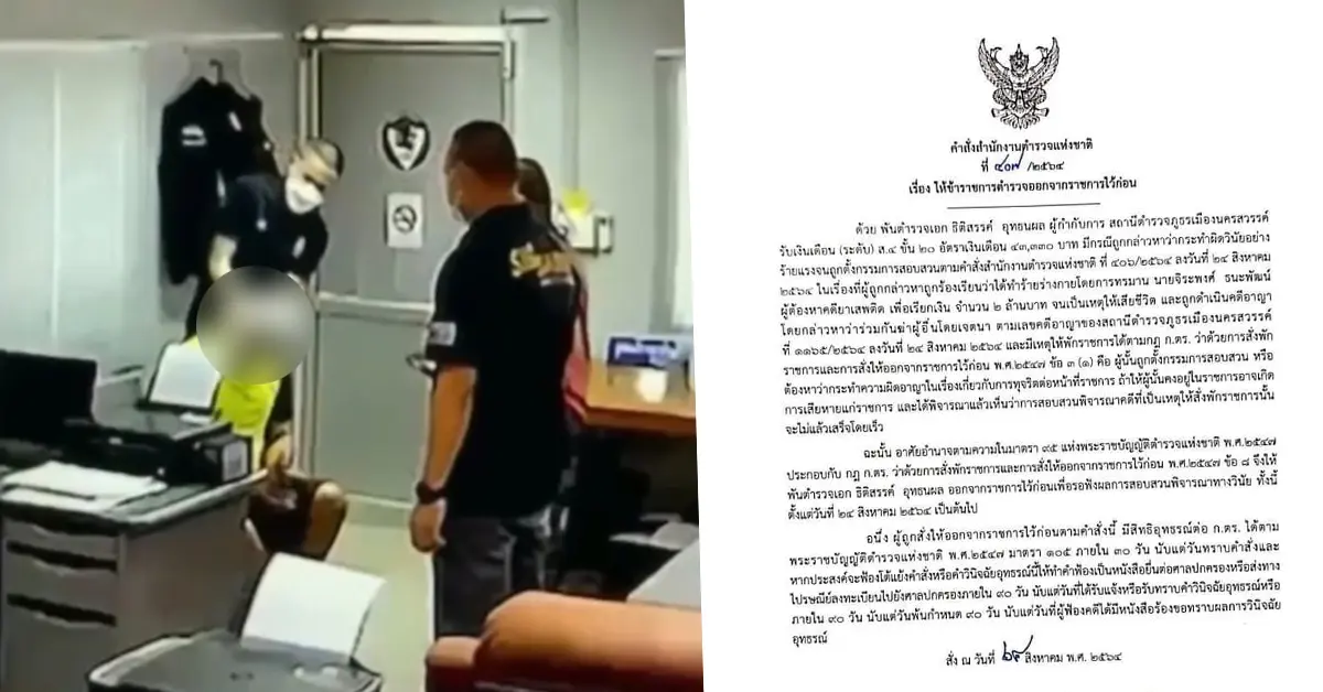 ผบ.ตร. ออกคำสั่งให้ ผู้กำกับโจ้ ออกจากราชการไว้ก่อน ระหว่างรอผลการสอบสวน หลังคลิปฉาวเรียกเงิน 2 ล้าน ก่อนใช้ถุงคลุมหัวผู้ต้องหาเสียชีวิต