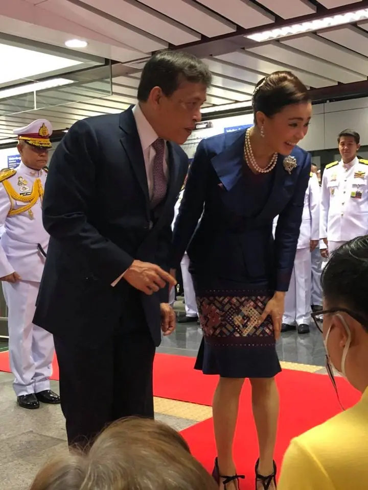 ครั้นเสด็จ ฯ ถึงสถานีรถไฟฟ้าสนามไชย เขตพระนคร กรุงเทพมหานคร นายอนุทิน ชาญวีรกูล รองนายกรัฐมนตรี และรัฐมนตรีว่าการกระทรวงสาธารณสุข, นายศักดิ์สยาม ชิดชอบ รัฐมนตรีว่าการกระทรวงคมนาคม, นายชยธรรม์ พรหมศร ปลัดกระทรวงคมนาคม, พลตำรวจเอก อัศวิน ขวัญเมือง ผู้ว่าราชการกรุงเทพมหานคร, นายสราวุธ ทรงศิวิไล ประธานกรรมการการรถไฟฟ้าขนส่งมวลชนแห่งประเทศไทย, นายภคพงศ์ ศิริกันทรมาศ ผู้ว่าการการรถไฟฟ้าขนส่งมวลชนแห่งประเทศไทย, นายปลิว ตรีวิศวเวทย์ ประธานกรรมการบริหาร บริษัท ทางด่วนและรถไฟฟ้า กรุงเทพ จำกัด (มหาชน) และข้าราชการ เฝ้า ฯ รับเสด็จ โดยมีประชาชนที่สวมเสื้อสีเหลืองมาจับจองพื้นบริเวณฟุตปาธริม ถนนสนามไชย เป็นจำนวนมาก